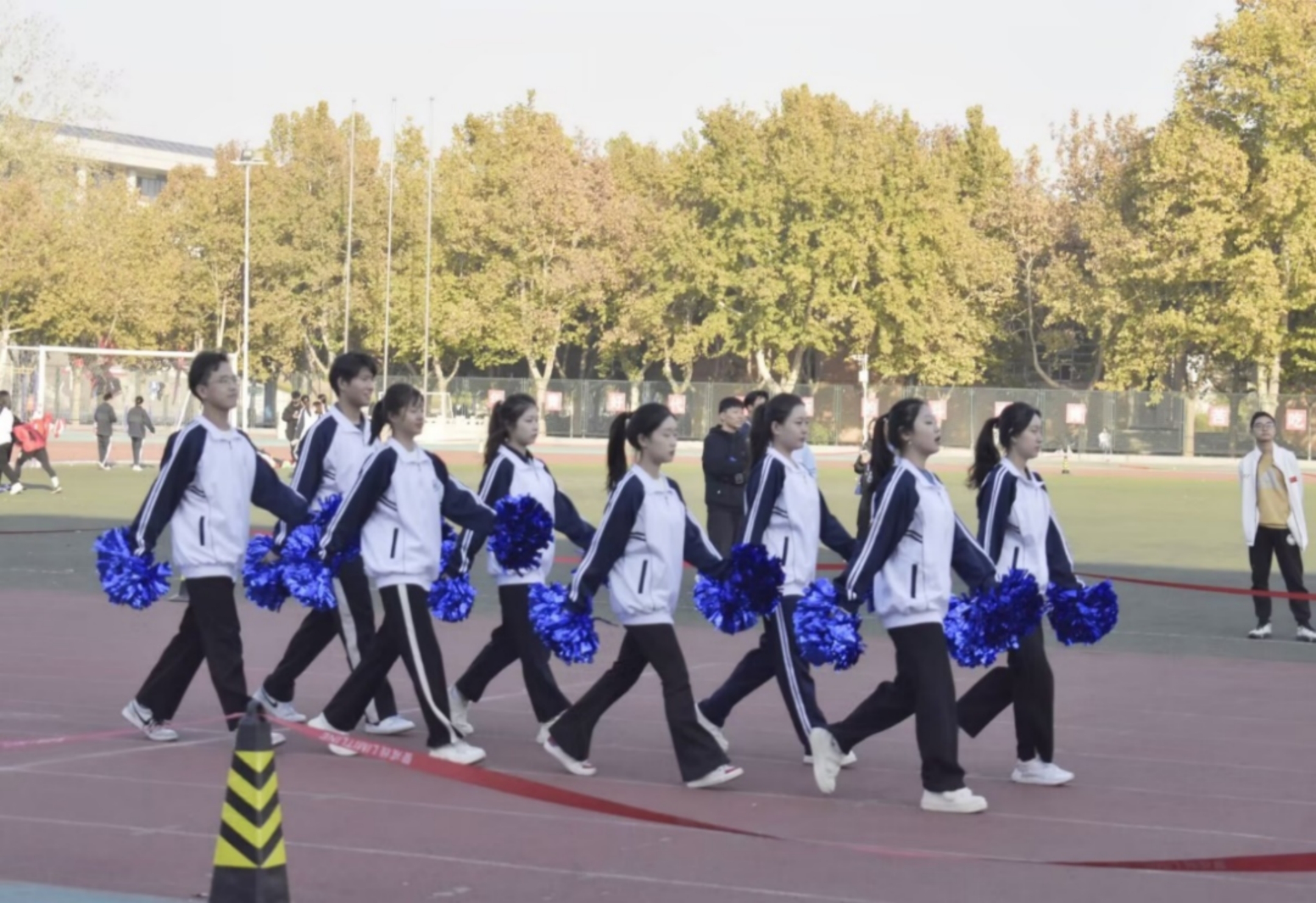 抽签后,各学院的啦啦队进行了活力四射的表演,为即将上场的运动员们加油鼓劲。公司啦啦队员手执蓝色花球,绽放出阳光自信的笑容,她们舞姿优美且富有节奏感,朝气蓬勃的青春风采交映生辉。