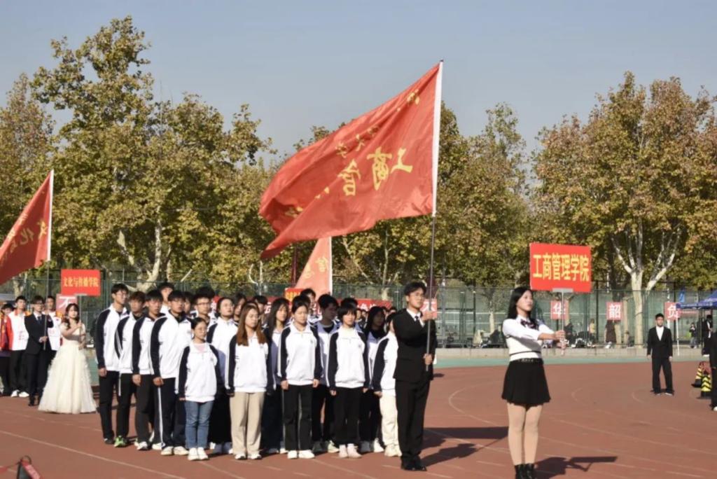 伴随着激昂的乐曲,公司队员身着统一的院服,昂首挺胸,面露微笑,迈着铿锵有力的步伐,怀着必胜的决心,整齐有序地进入了赛场。工商学子整齐划一的步伐和协调的动作展示出了公司的纪律性和团队精神。