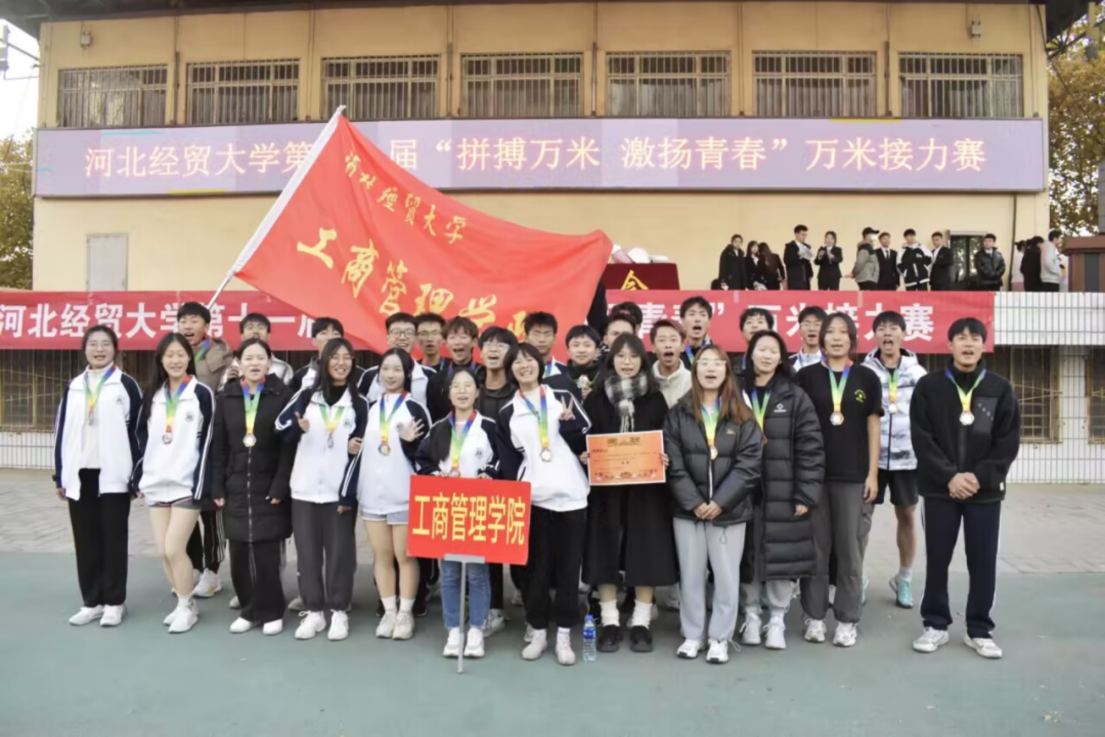 此次万米接力赛不仅丰富了工商学子的课余生活,还增强了同学们的团队合作意识与集体荣誉感,彰显了工商学子积极向上、奋力拼搏的精神风貌,是坚持德智体美劳全面发展育人理念的体现。