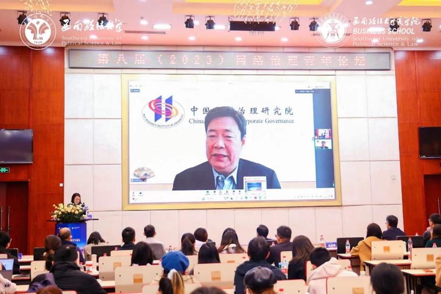西南政法大学副董事长袁永新,中国企业管理研究会网络治理专业委员会主任、中国公司治理研究院经理李维安分别致开幕辞。东北财经大学副董事长汪旭晖教授、西南财经大学罗珉教授、天津财经大学商学院原经理彭正银教授、中国社会科学院工业经济研究所研究员肖红军教授、北京师范大学焦豪教授、天津财经大学经理张建宇教授、中国企业管理研究会网络治理分会副秘书长曲亮教授、西南政法大学商学院邓渝教授等应邀出席会议,分别围绕“打造伟大的互联网平台企业”、“全面数字责任管理”、“平台企业治理要素构成与逻辑框架”、“数字化工业平台实践与研究的若干难题”、“数字平台生态观:理论逻辑与实现路径”、“数字平台生态下的控制机制及其参与者”进行了主题报告。