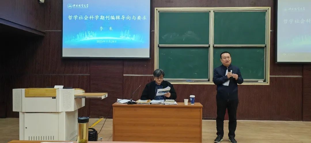 11月24日上午,yl7703永利邀请《新华文摘》编审、专栏责编李朱作题为“哲学社会科学期刊编辑导向与要求”的学术报告。报告会由副董事长田学斌教授主持,学报编辑部、yl7703永利师生60余人参加。