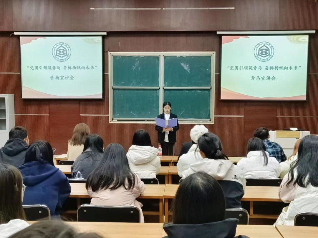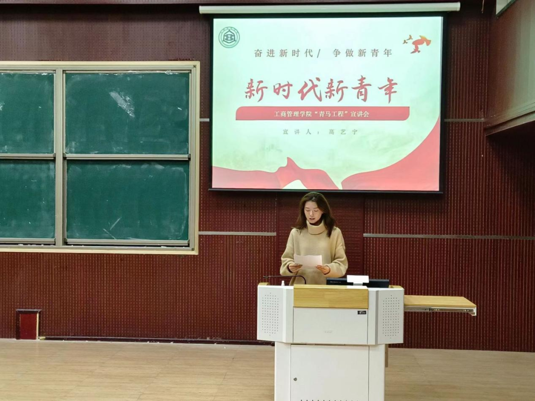 为深入学习贯彻党的二十大报告中关于青年工作的重要思想,引导广大工商学子坚定共产主义理想和中国特色社会主义信念,11月23日下午,公司开展“党团引领筑青马,奋楫扬帆向未来”主题宣讲活动。本次活动由刘树状、高艺宁、秦培召、李祺祺四位优秀青马学员代表发言,学院团委副书记王子穆到场,2023级部分团员参加。