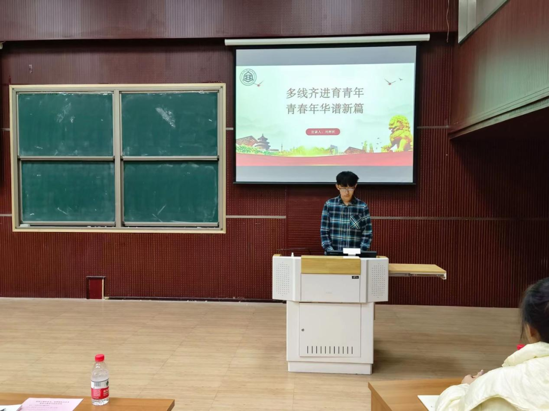 汇报人刘树状以“多线齐进育青年,青春年华谱新篇”为主题,分享了自己的青马培训经历,他从个人素养的培养、学习能力的培养、工作能力的培养以及如何协调处理这三种关系讲述该如何做好一名合格的青马接班人,帮助同学们更深刻地了解青马工程的重要意义,理解习近平新时代中国特色社会主义思想的内涵。汇报人高艺宁向同学们介绍了青马工程的内涵和培养目标。她表示,作为新一代老员工,同学们要勇于尝试、敢于奋斗、抓住机遇、砥砺成长,在行动中实现价值,在学习中收获经验,谱写好新时代青年的人生篇章。