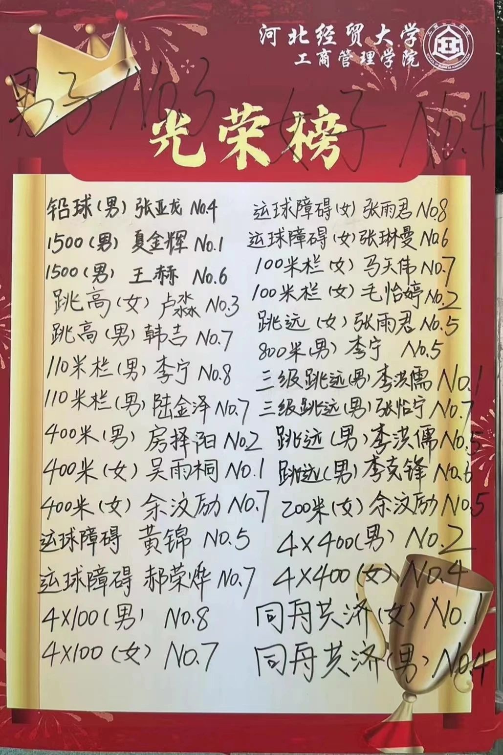 在两天的激烈角逐中,工商学子们乘风破浪、披荆斩棘,认真对待每场比赛,勇攀高峰,突破自我,最终获得女子组团体成绩第四名、男子组团体成绩第三名的好成绩,并荣获体育运动优秀组织奖、体育道德风尚奖!