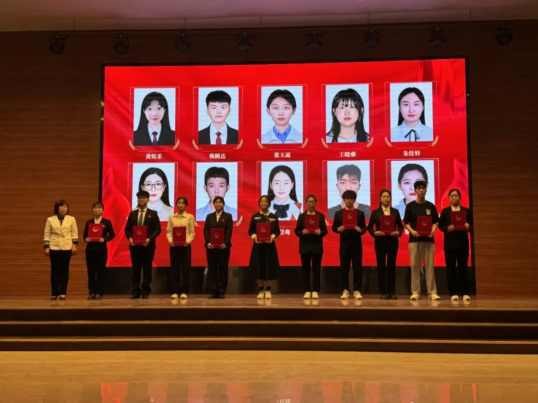 yl7703永利2022级人力资源管理3班团支书刘雅洁(右3)上台领奖