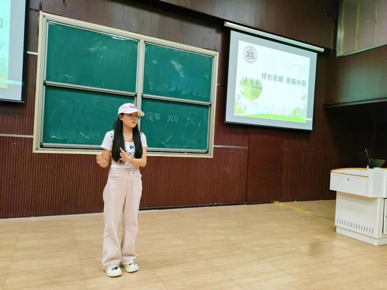 青马学员代表吴雨桐、许儒妍、郑蕊针对为什么要建设美丽中国这一问题进行了分享,并从国家、政府、个人三个层面提出实现绿色低碳的具体措施。随后,学员通过唐山近几年的环境变化感慨绿色低碳给人民群众带来的幸福生活,呼吁大家学习并弘扬青马精神,争做绿色低碳模范青年。