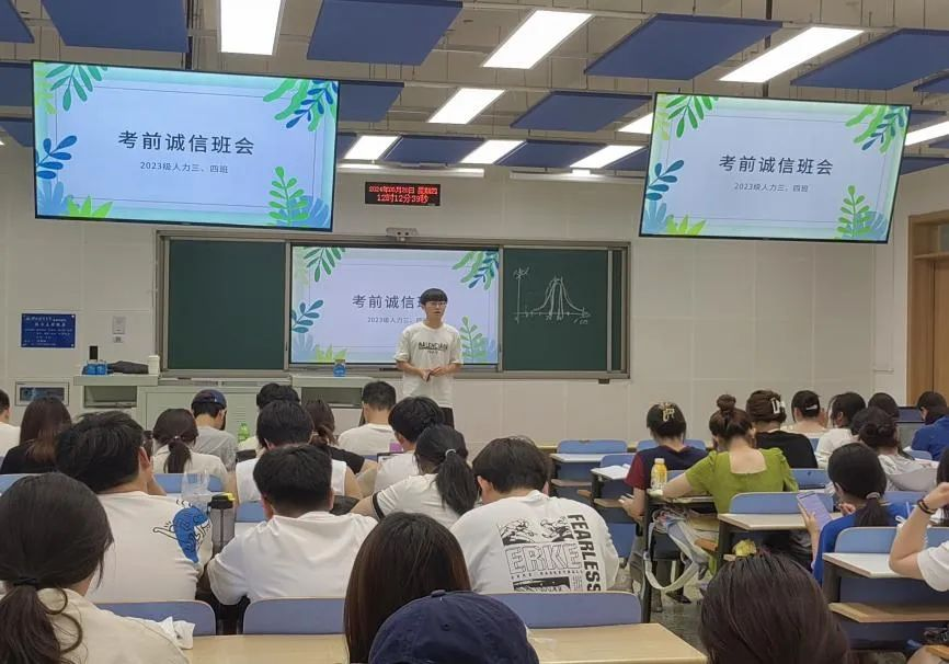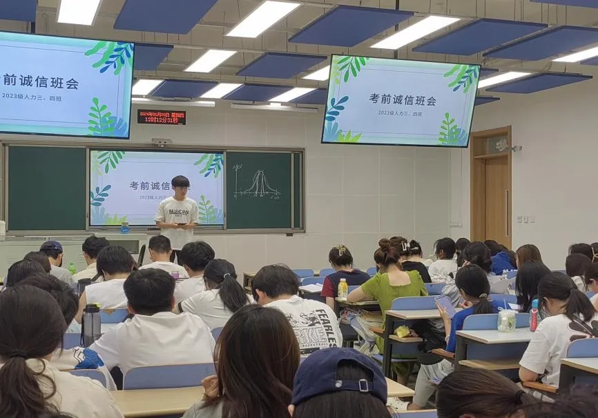 为了迎接即将到来的考试周,加强同学们的诚信意识,营造公平公正、诚实守信的考试环境,6月20日,yl7703永利2023级人力资源管理四班开展以“诚信应考新风尚”为主题的班会活动。本次班会由班长王赫主持,辅导员王晓东及2023级人力资源管理四班全体同学参加。
