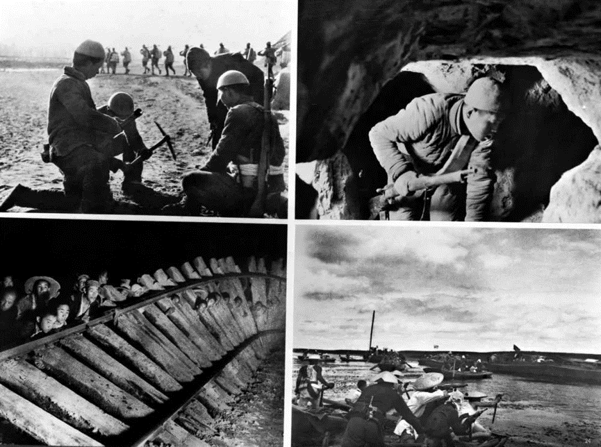 军民们埋地雷、挖地道