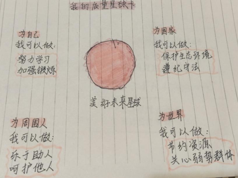 在课程中,我带领小朋友们踏上了探索高质量生活的奇妙之旅。我们一同深入了解高质量工作的内涵,在这个过程中,孩子们逐渐领悟到蕴含其中的工匠精神。课程的最后,我引导孩子们从个人、团队、国家乃至世界这四个独特视角出发,展开丰富的想象,用心绘制属于自己的质量人生蓝图,让他们在思维的碰撞与拓展中,对“质量人生”有了更为深刻和全面的理解。